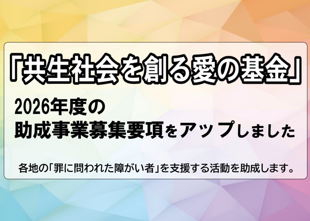 各地域で行われている「罪に問われた障がい者」を支援する活動に対して、 下記のとおり助成いたします。
